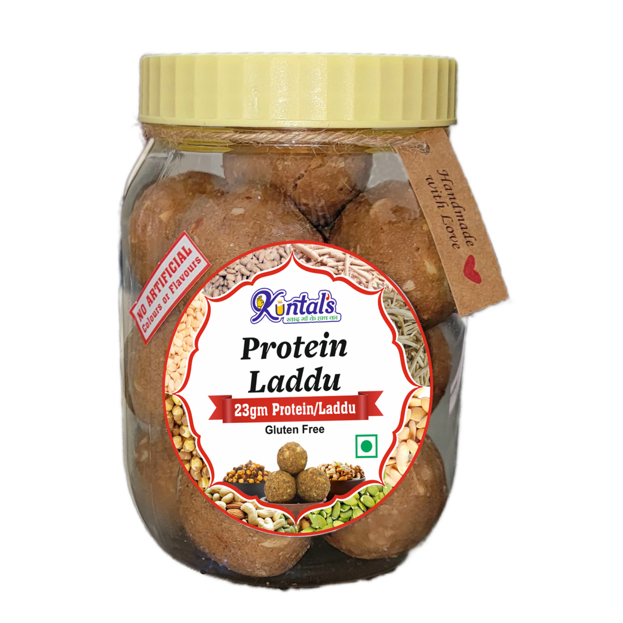 Protein laddus are nutrient-dense, high-protein, and high-fiber energy balls made with a combination of Gram flour, nuts, seeds, dried fruits, Ashvagandha & shatavari etc. making it a healthy snack for energy boosts. Each laddu has approx 23grams of protein. It does contain wheat gluten.